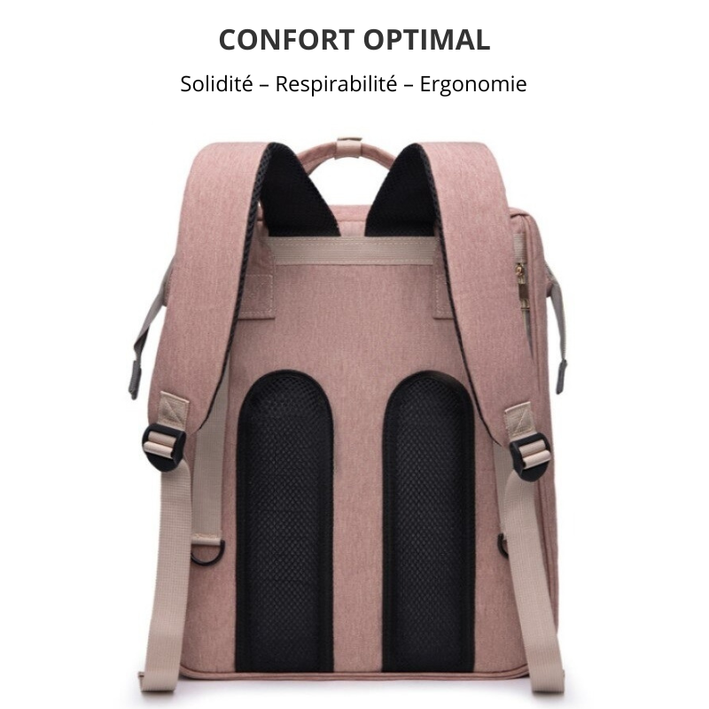 Die nomadische Wickeltasche wird mit einer bequemen Wickelunterlage , einem Spielzeughalter , einem Sonnenschirm und einem Moskitonetz geliefert und schafft so einen Raum, in dem Ihr Baby bequem spielen oder schlafen kann, geschützt vor Insekten und übermäßigem Licht.