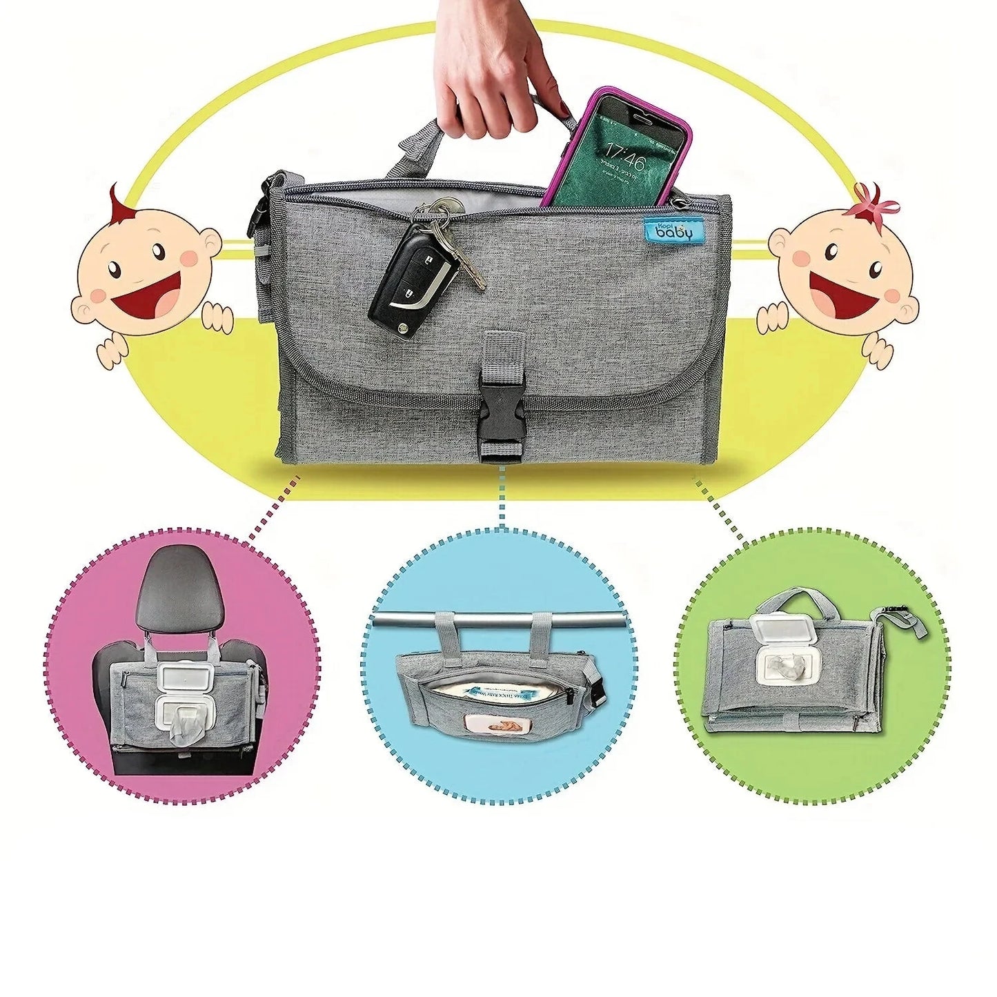 Entdecken Sie unsere tragbare Wickelauflage, die Eltern das Leben unterwegs erleichtern soll. Praktisch, leicht und wasserdicht, ermöglicht es Ihnen, Ihr Baby völlig sicher zu wickeln, egal wo Sie sind!