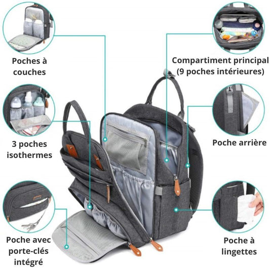Our diaper bags are designed to make life easier for active parents . Featuring multiple compartments and storage pockets, they offer optimal organization for diapers, bottles, wipes and all your baby's essentials. With their modern style and practical features , our diaper bags accompany you in style wherever you go.